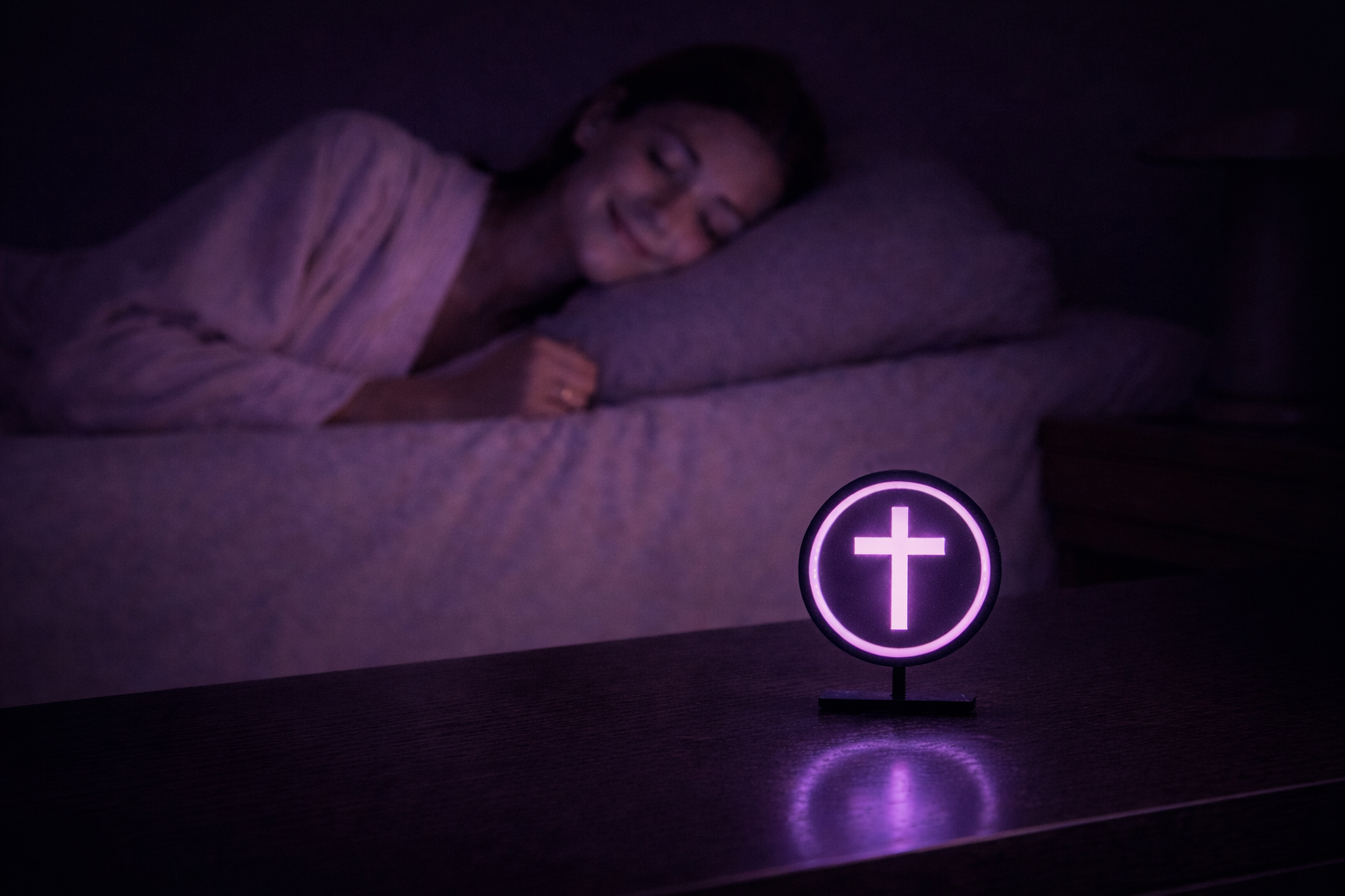 A gentle light of faith that responds when you need it most. Designed to bring peace, comfort, and presence during life's hardest moments.