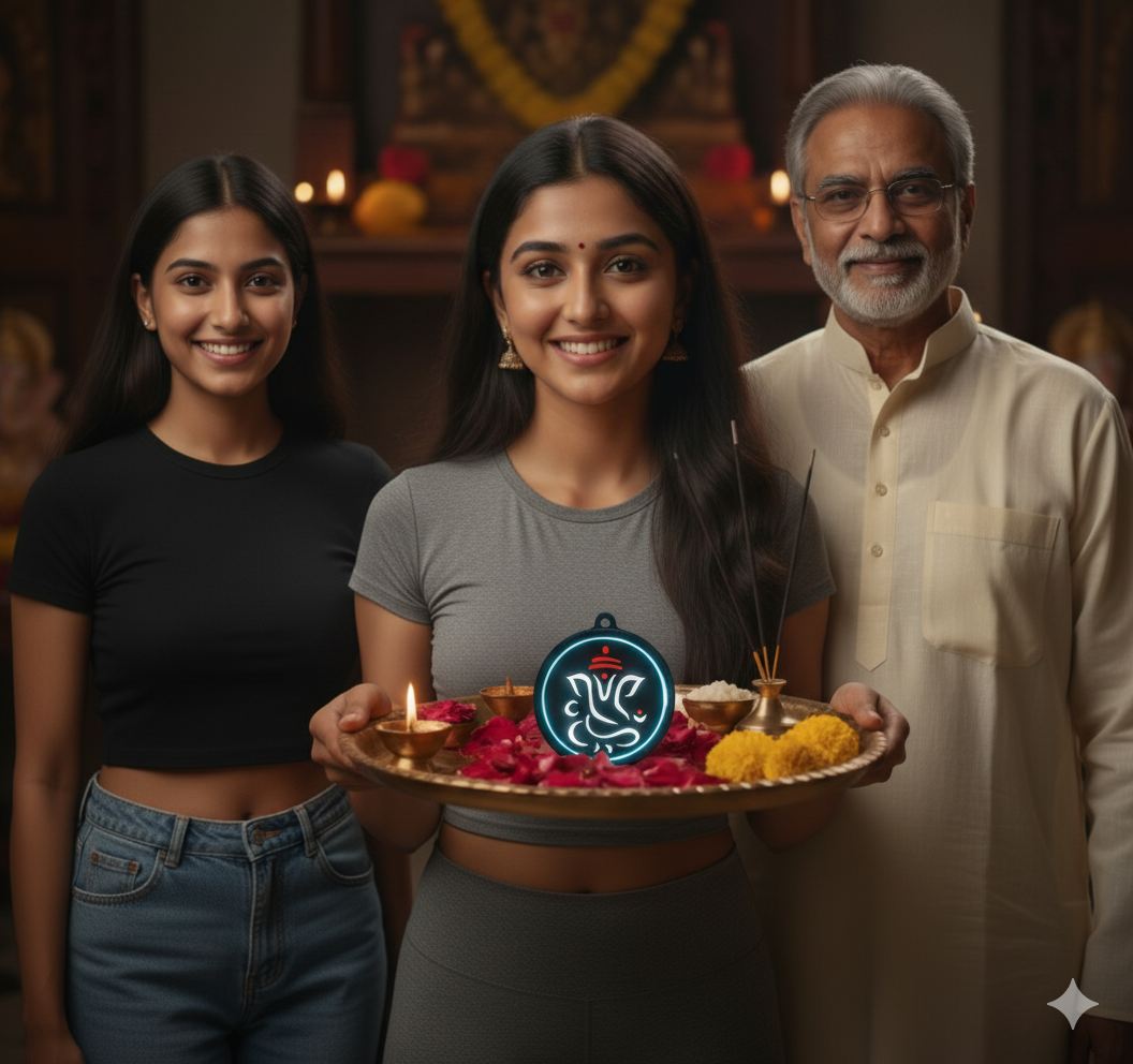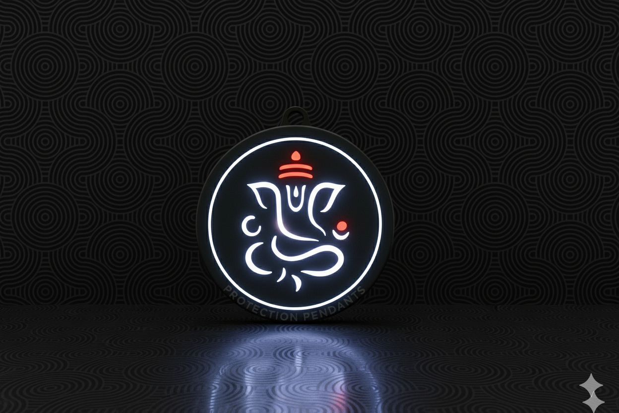 Inspired by Lord Ganesha, the remover of obstacles and guardian of new beginnings, this softly glowing pendant serves as a steady reminder to pause, breathe, and move forward with clarity and courage.